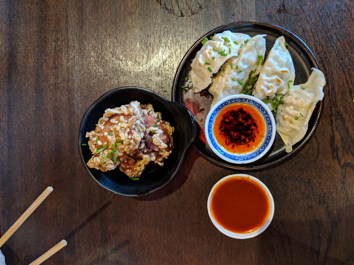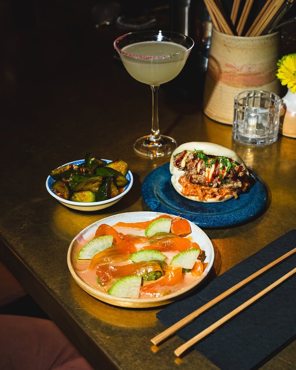 The pickled cucumber, chicken dumplings, beef bao and plum negroni were gorgeous. Atmosphere is a really cute date spot, nice low lighting and seat around the bar make it nice and lowkey